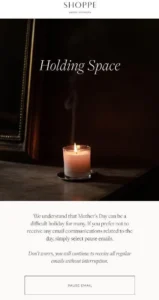 While this case study from Parcel.io on pausing emails isn’t specifically focused on pausing holiday and event emails, the aim was the same — to communicate with empathy and let the subscriber take control. The results? 98% of those who could have chosen to pause chose to opt out instead.